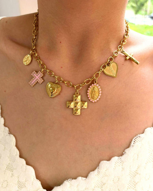 Gold Cross Heart Charm Necklace