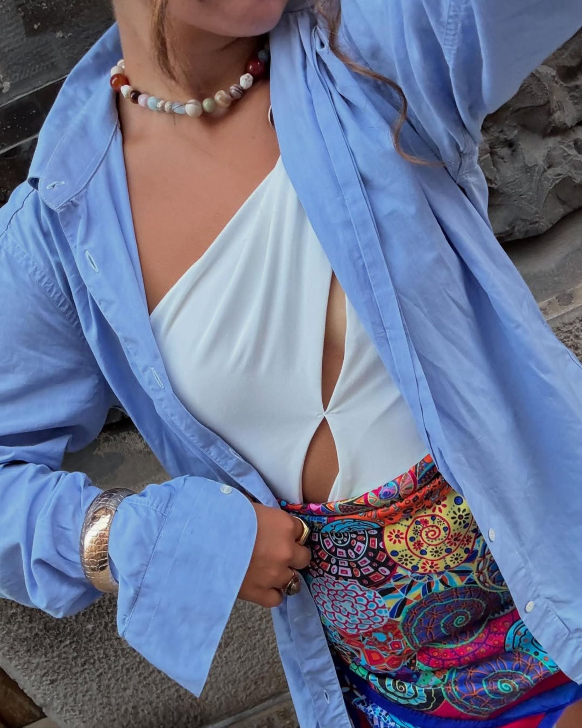 Pair it with the Spiral Earrings to echo the shell motif and draw light toward the face. Slip on the Tide Bracelet to mirror its flowing palette at the wrist — together, they create a balanced, effortless set with soul.